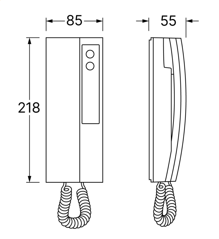Digital intercom based on the “2 Wire BUS”, it includes a door-open button and a service button plus an electronic call tone with a 3 level volume control which can be adjusted by the user. Internally, the intercom, has an 8 way dip-switch to set the PHONE ID, a terminal board with 6 terminals for connection to the bus and other connections. Microphone volume adjustment (only available from revision R0.2).