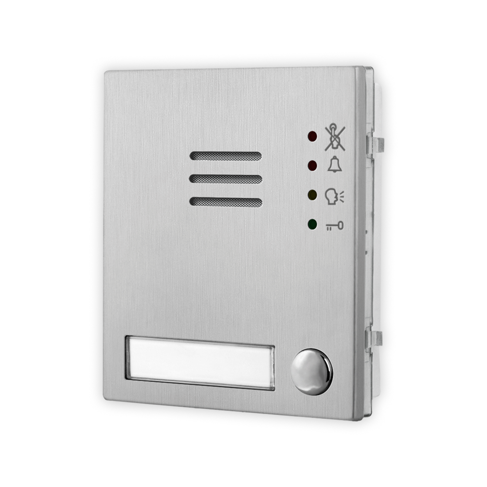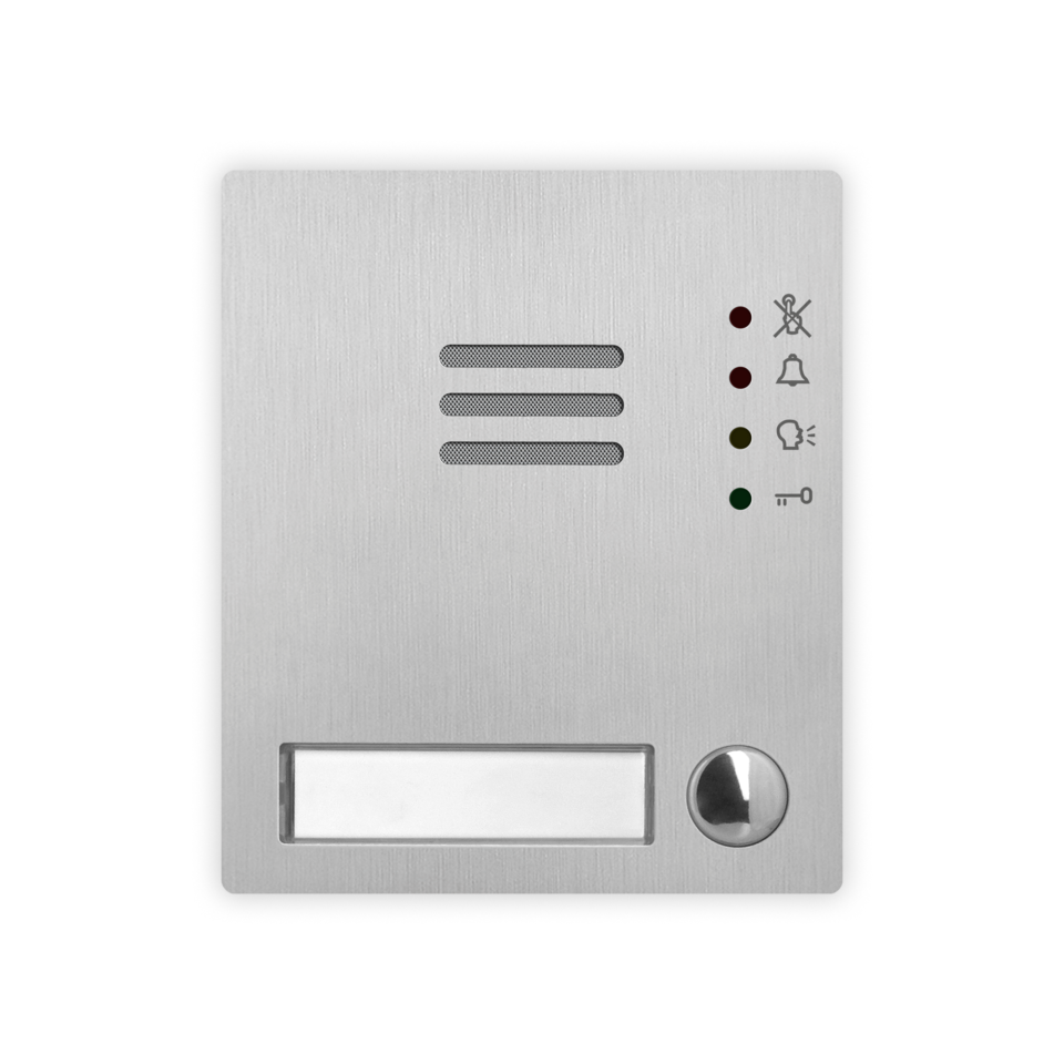 The Art. 4204X unit is a digital front panel based on a VX2200 BUS intercom system that enables the connection of traditional push buttons. It incorporates the functional interface connections from functional to digital and the speaker unit module with 0, 1 or 2 call buttons.