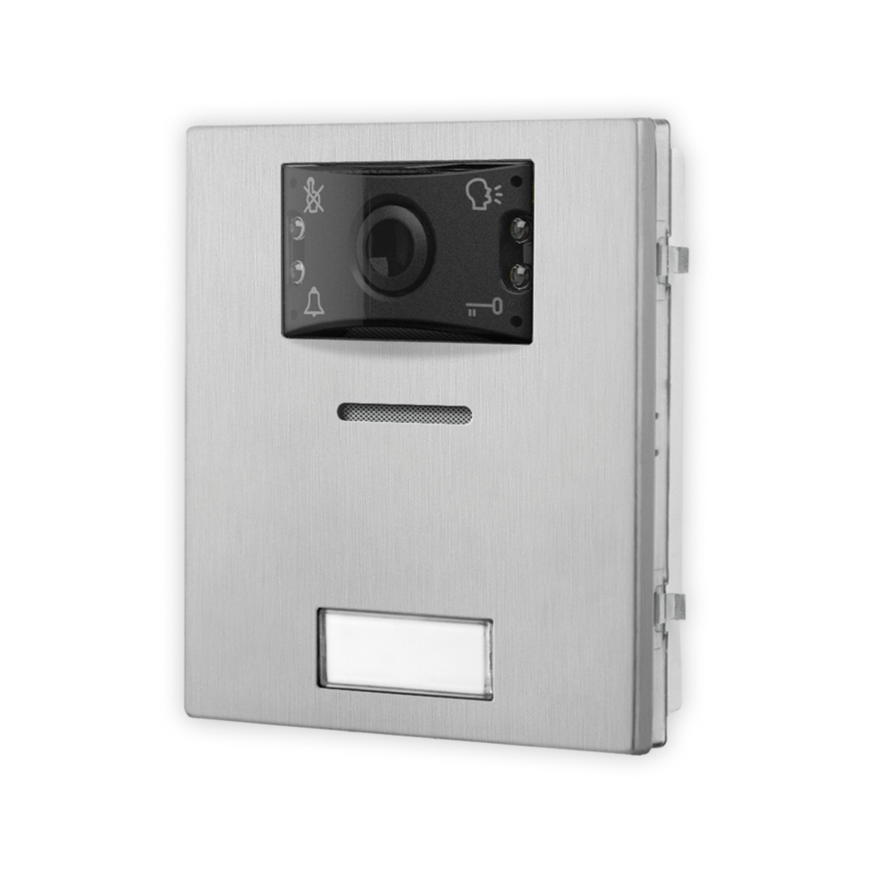 The Art. 4284X unit is a digital front panel based on a VX2200 BUS intercom system that enables the connection of traditional push buttons. It incorporates the functional interface connections from functional to digital, the speaker unit module with 0, 1 or 2 call buttons and includes a high quality colour CMOS Camera with autoiris lens and white light illumination LEDs. These modules are also equiped with a built-in proximity key reader. This device enables the connection of up to 40 functional push buttons using standard 4000 Series extension module panels Art. 4042, Art. 4043, Art. 4044, Art. 4045 and relevant double button version Art. 4042D, Art. 4043D, Art. 4044D and Art. 4045D. The push buttons already fitted to the module are to be subtracted from the number of those to be inserted, i.e. 2 or 1 according to the model. The module built-in buttons, 1 or 2 (Art. 4284X-1 or Art. 4284X-2) are set as 1st ID PHONE or 1st and 2nd of the addresses group selected by dip-switches 2, 3 and 4. All the modules must be assembled using the 4000 Series flush or surface mounting units. The Art. 4284 can work with any intercom/videophone for VX2200 digital system.The Art. 4284X unit is a digital front panel based on a VX2200 BUS intercom system that enables the connection of traditional push buttons. It incorporates the functional interface connections from functional to digital, the speaker unit module with 0, 1 or 2 call buttons and includes a high quality colour CMOS Camera with autoiris lens and white light illumination LEDs. These modules are also equiped with a built-in proximity key reader. This device enables the connection of up to 40 functional push buttons using standard 4000 Series extension module panels Art. 4042, Art. 4043, Art. 4044, Art. 4045 and relevant double button version Art. 4042D, Art. 4043D, Art. 4044D and Art. 4045D. The push buttons already fitted to the module are to be subtracted from the number of those to be inserted, i.e. 2 or 1 according to the model. The module built-in buttons, 1 or 2 (Art. 4284X-1 or Art. 4284X-2) are set as 1st ID PHONE or 1st and 2nd of the addresses group selected by dip-switches 2, 3 and 4. All the modules must be assembled using the 4000 Series flush or surface mounting units. The Art. 4284 can work with any intercom/videophone for VX2200 digital system.