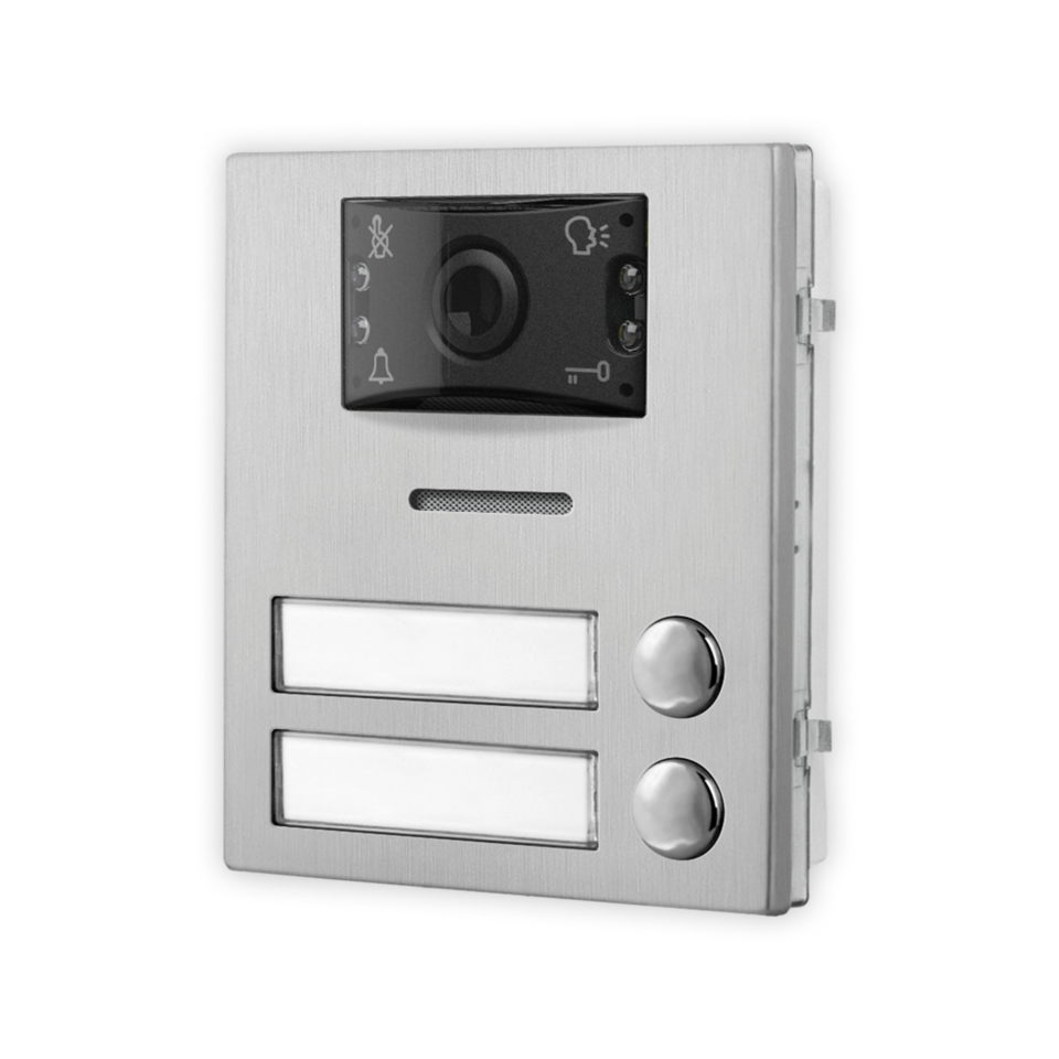 The Art. 4284X unit is a digital front panel based on a VX2200 BUS intercom system that enables the connection of traditional push buttons. It incorporates the functional interface connections from functional to digital, the speaker unit module with 0, 1 or 2 call buttons and includes a high quality colour CMOS Camera with autoiris lens and white light illumination LEDs. These modules are also equiped with a built-in proximity key reader. This device enables the connection of up to 40 functional push buttons using standard 4000 Series extension module panels Art. 4042, Art. 4043, Art. 4044, Art. 4045 and relevant double button version Art. 4042D, Art. 4043D, Art. 4044D and Art. 4045D. The push buttons already fitted to the module are to be subtracted from the number of those to be inserted, i.e. 2 or 1 according to the model. The module built-in buttons, 1 or 2 (Art. 4284X-1 or Art. 4284X-2) are set as 1st ID PHONE or 1st and 2nd of the addresses group selected by dip-switches 2, 3 and 4. All the modules must be assembled using the 4000 Series flush or surface mounting units. The Art. 4284 can work with any intercom/videophone for VX2200 digital system.The Art. 4284X unit is a digital front panel based on a VX2200 BUS intercom system that enables the connection of traditional push buttons. It incorporates the functional interface connections from functional to digital, the speaker unit module with 0, 1 or 2 call buttons and includes a high quality colour CMOS Camera with autoiris lens and white light illumination LEDs. These modules are also equiped with a built-in proximity key reader. This device enables the connection of up to 40 functional push buttons using standard 4000 Series extension module panels Art. 4042, Art. 4043, Art. 4044, Art. 4045 and relevant double button version Art. 4042D, Art. 4043D, Art. 4044D and Art. 4045D. The push buttons already fitted to the module are to be subtracted from the number of those to be inserted, i.e. 2 or 1 according to the model. The module built-in buttons, 1 or 2 (Art. 4284X-1 or Art. 4284X-2) are set as 1st ID PHONE or 1st and 2nd of the addresses group selected by dip-switches 2, 3 and 4. All the modules must be assembled using the 4000 Series flush or surface mounting units. The Art. 4284 can work with any intercom/videophone for VX2200 digital system.