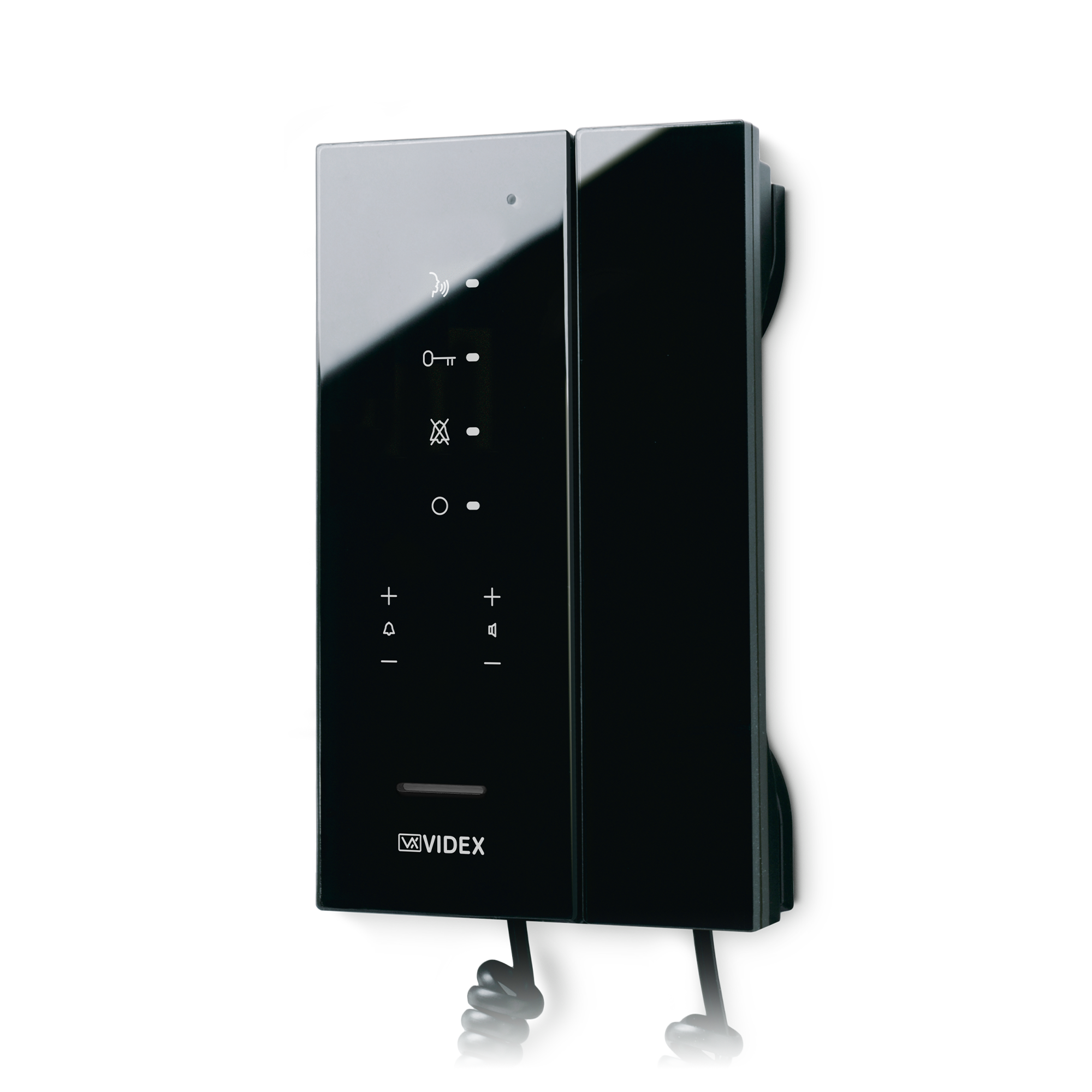 Intelligent Hands free intercom for the VX2200 digital system with touch sensitive buttons for “door open/concierge call”, “answer/camera recall”, “privacy” and “service” plus 4 buttons for volume adjustment and programming plus 4 LEDs related to the intercom operation. For the surface version only (Art. KRA76), a handset can also be used in addition to the handsfree mode.