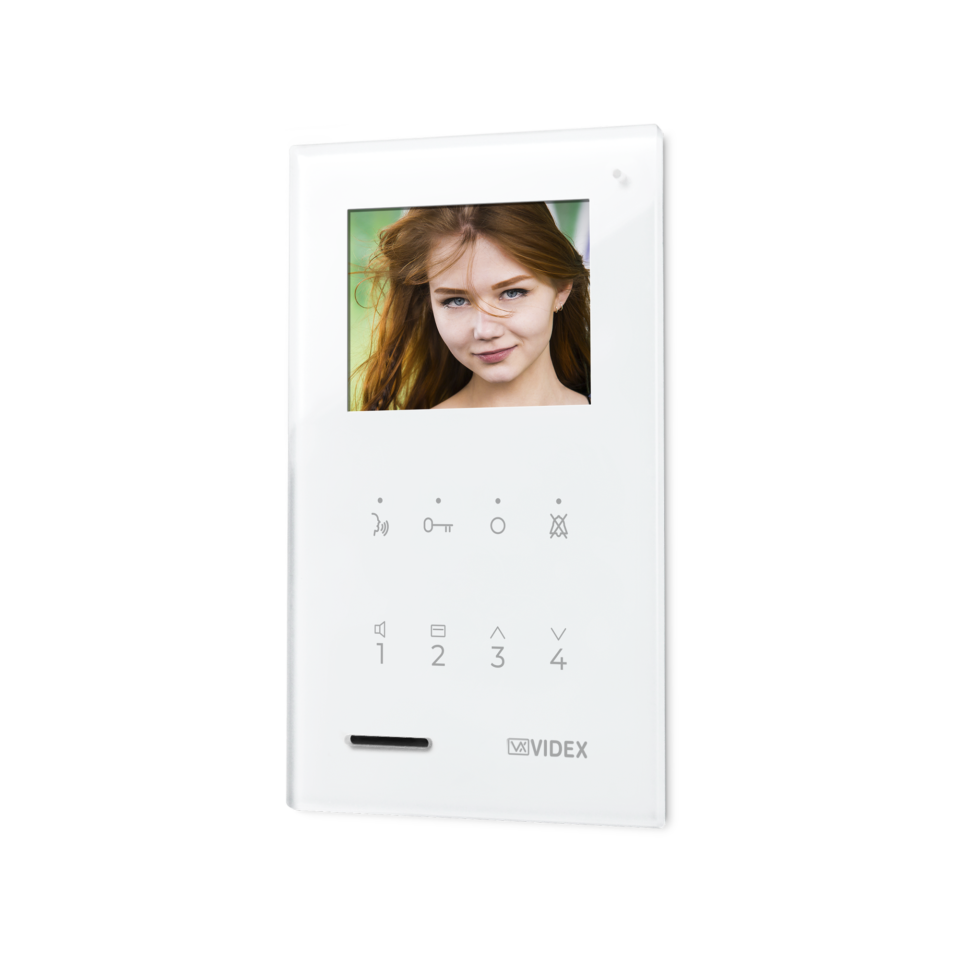 8 capacitive touch sensitive backlight buttons: “answer/camera recall/push to talk/end conversation”, “door open/concierge call”, “service button“, “privacy/reject call” plus other 4 buttons for programming, adjustments and intercommunication facility (available only between the Kristallo range of videophones and intercoms) that enables intercommunication between devices in the same apartment (same PHONE ID but different extension address) or between devices installed in different apartments (different PHONE ID).