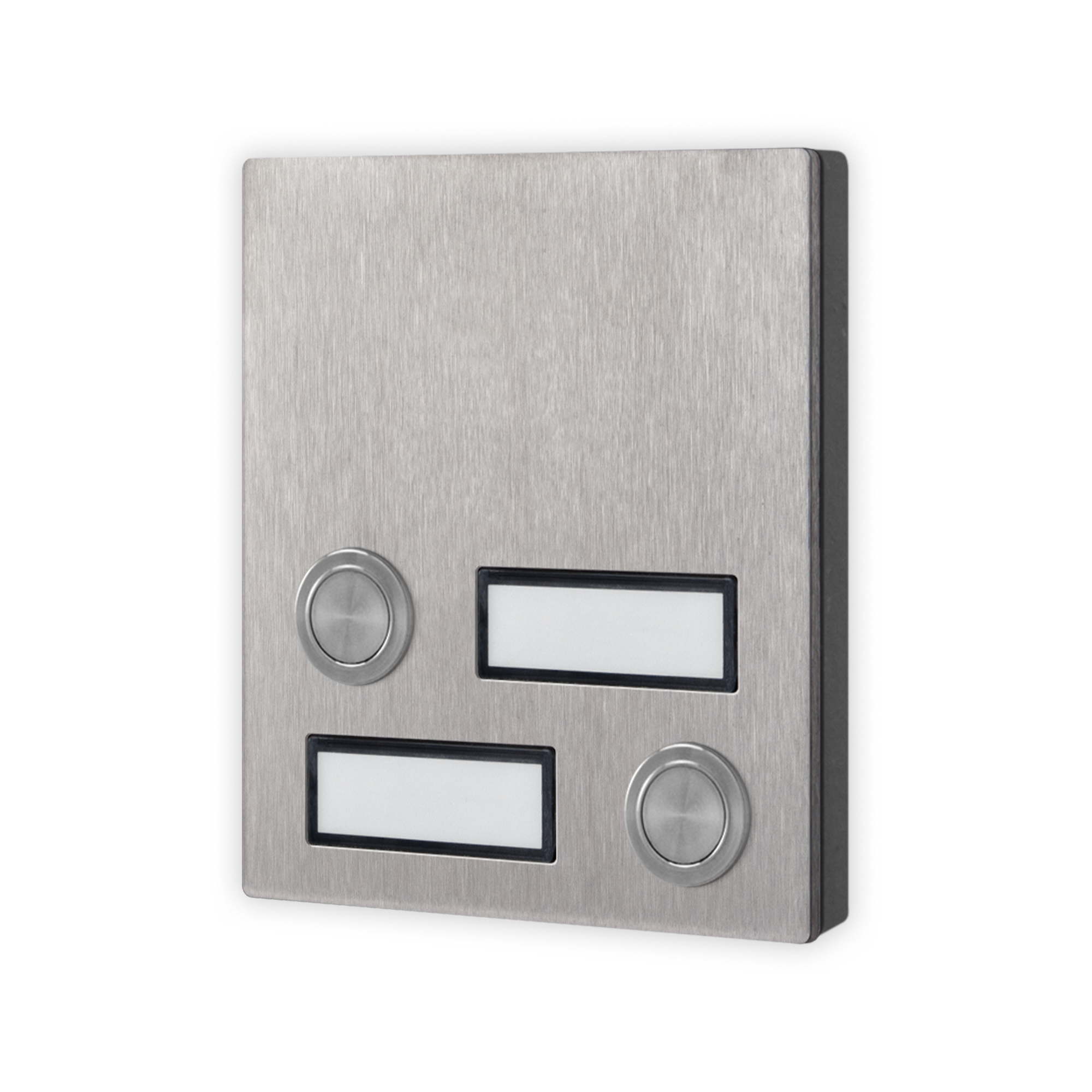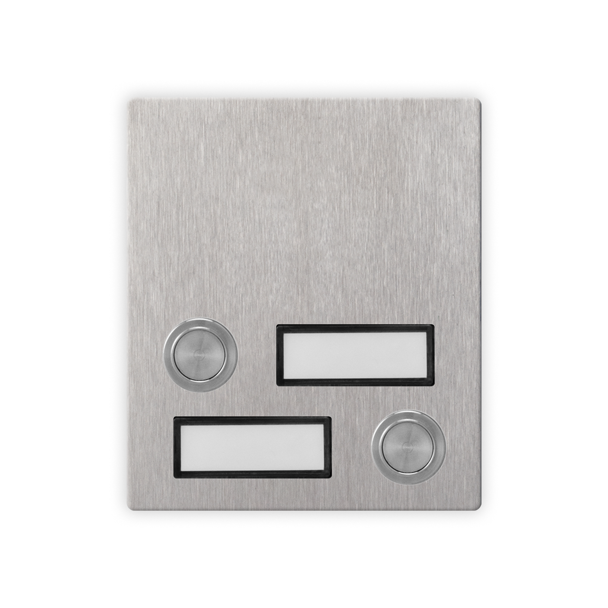 4000 series IK09 2-button call module for GSM system. Blue LED name cards backlighting. Connection via terminal board of optional button modules for a total of 24 push-buttons. AISI 316 brushed stainless steel plate (marine grade) that provides durability in installations subject to atmospheric agents and in the vicinity of marine environments. Vandal resistant plate with IK09 and IP65 protection rating. Operating temperature -20°/+60°C. Dimensions 103x120x43mm. 1 module.