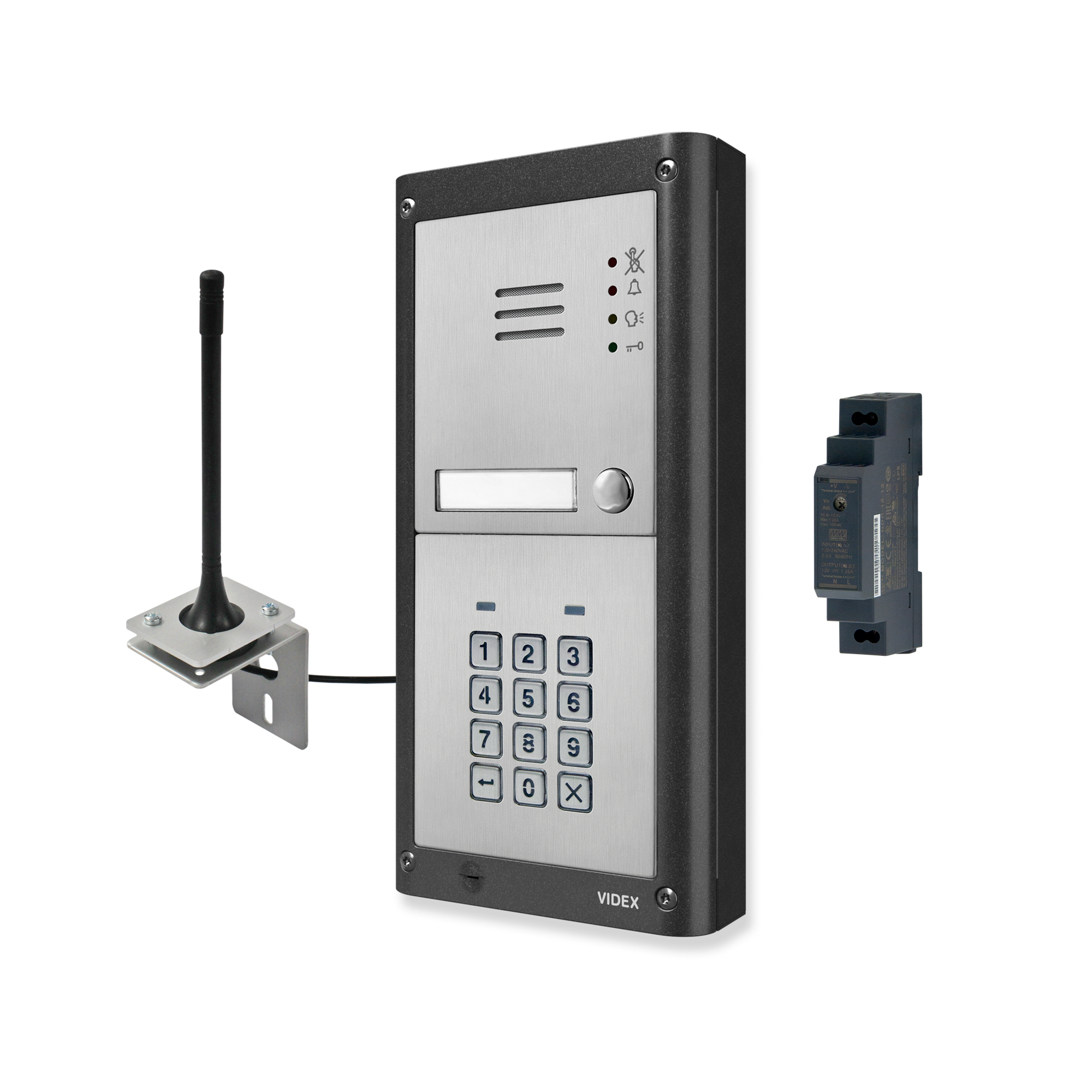 Surface single-family wireless intercom kit with numeric keypad, GSM system, expandable solution consisting of: 1 pc. 4810/4G-1/M, 1 pc. 4903/M, 1 pc. 4882, 1 pc. 434, 1 pc. HDR-15-12.