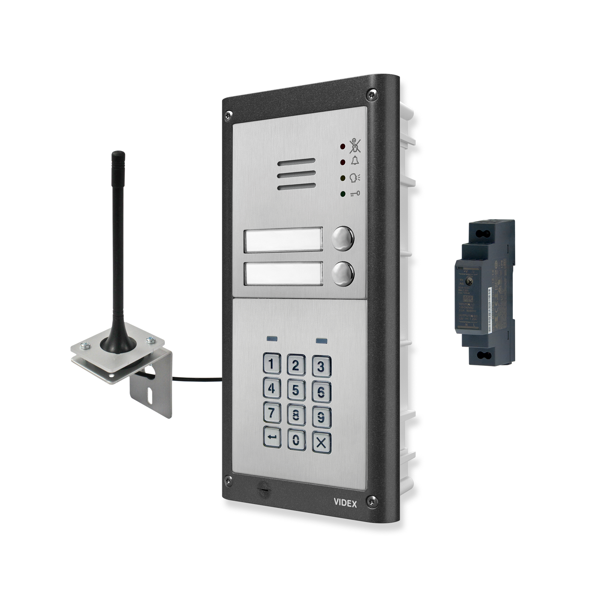 Flush twin-family wireless intercom kit with numeric keypad, GSM system, expandable solution consisting of: 1 pc. 4810/4G-2/M, 1 pc. 4903/M, 1 pc. 4852, 1 pc. 434, 1 pc. HDR-15-12.
