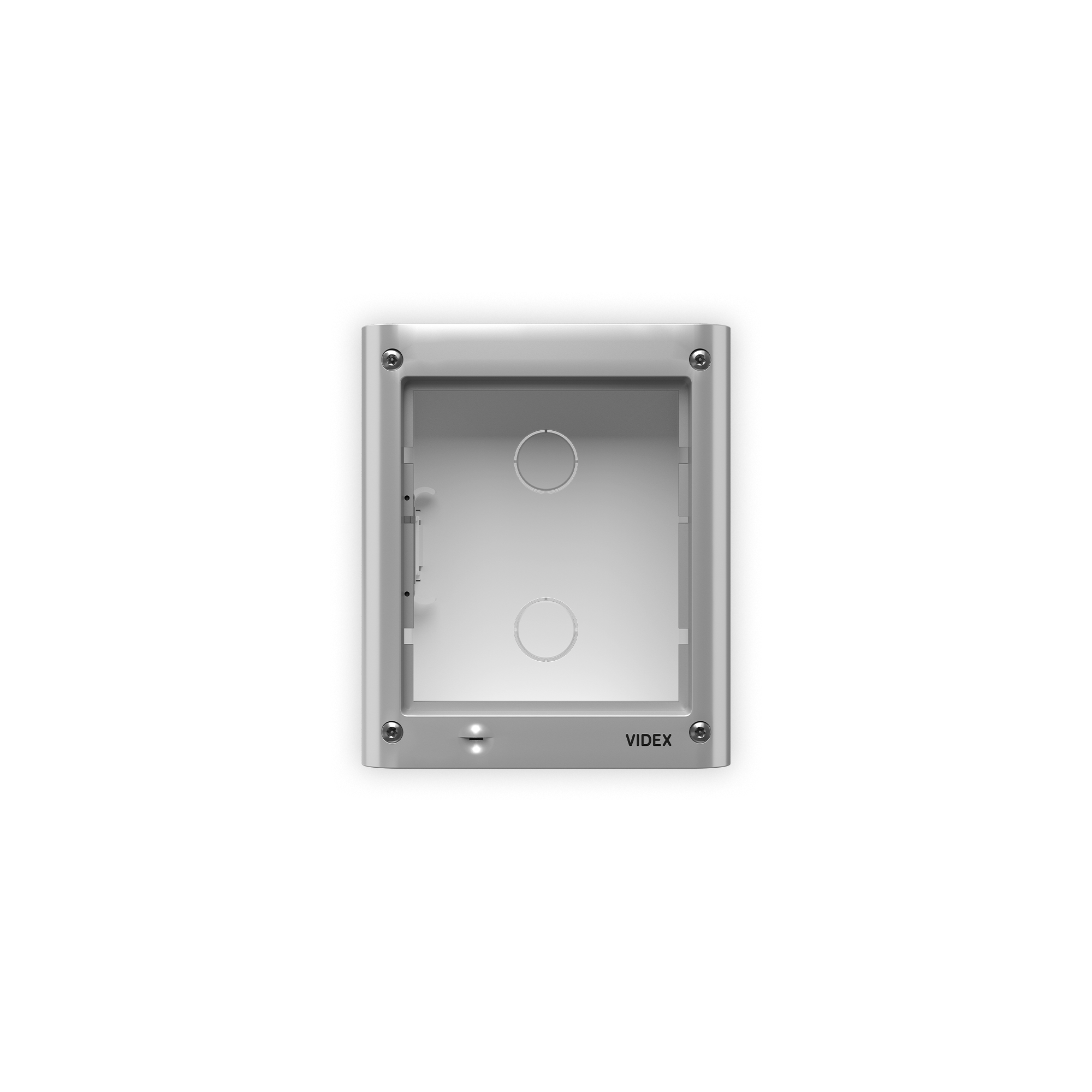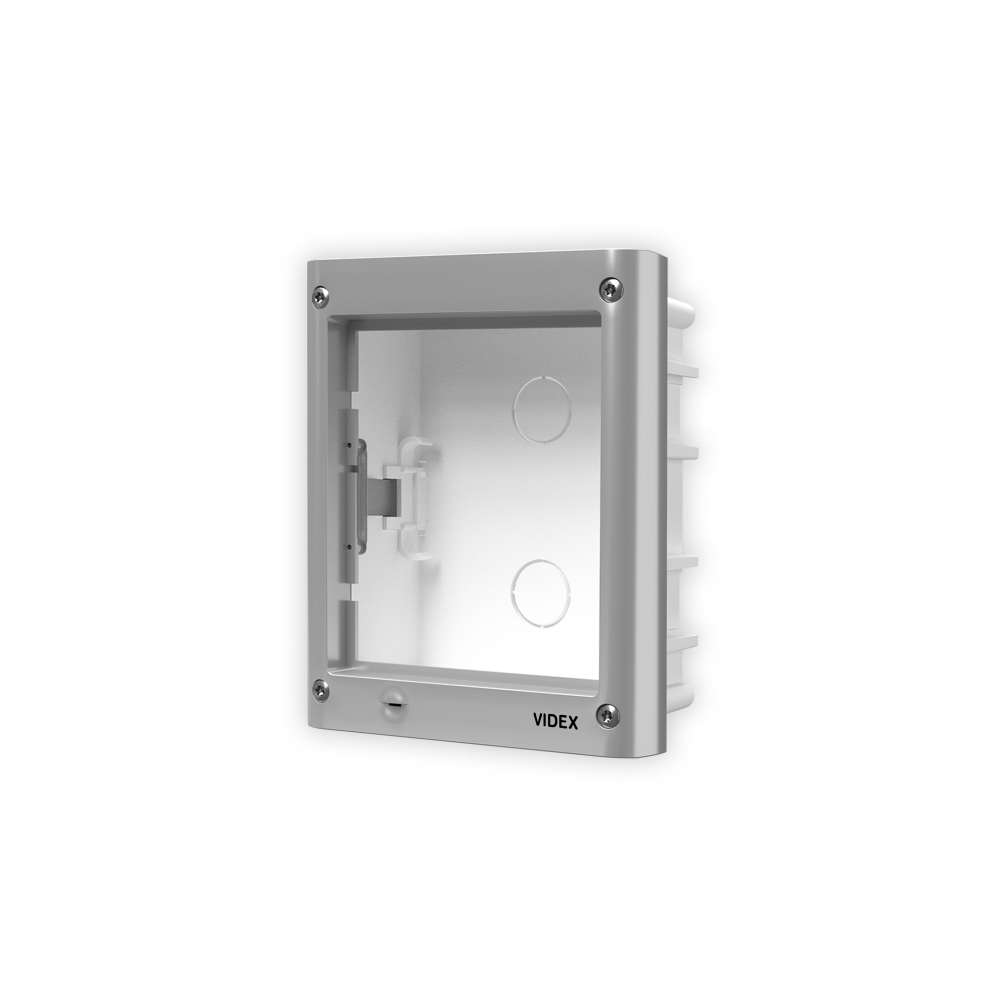 Composto da: scatola da incasso e telaio portamoduli. Il telaio comprende 4 viti di sicurezza tipo Torx, una guarnizione anti-infiltrazioni e cerniere laterali per consentire l’apertura del telaio per l’installazione o ispezione. Dimensione scatola: 120x143x45mm, dimensione telaio: 135x160x17mm, colore grigio alluminio.