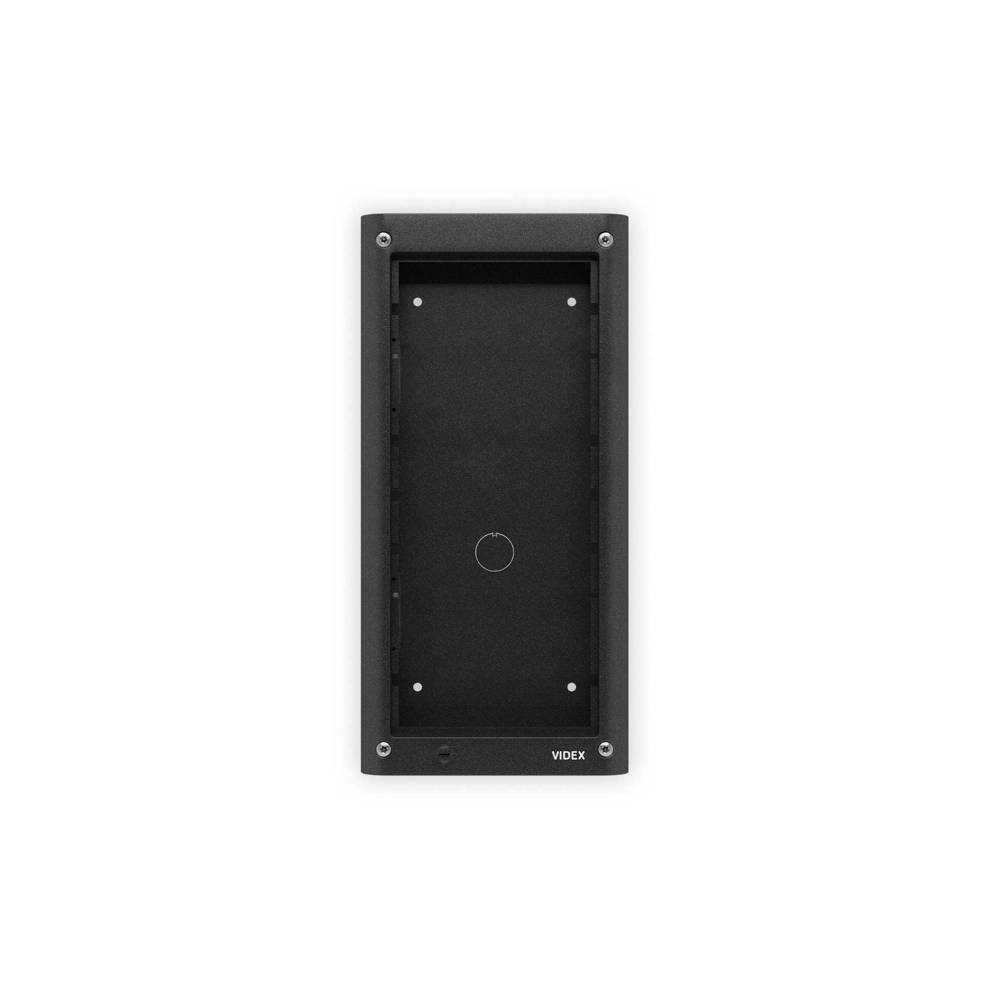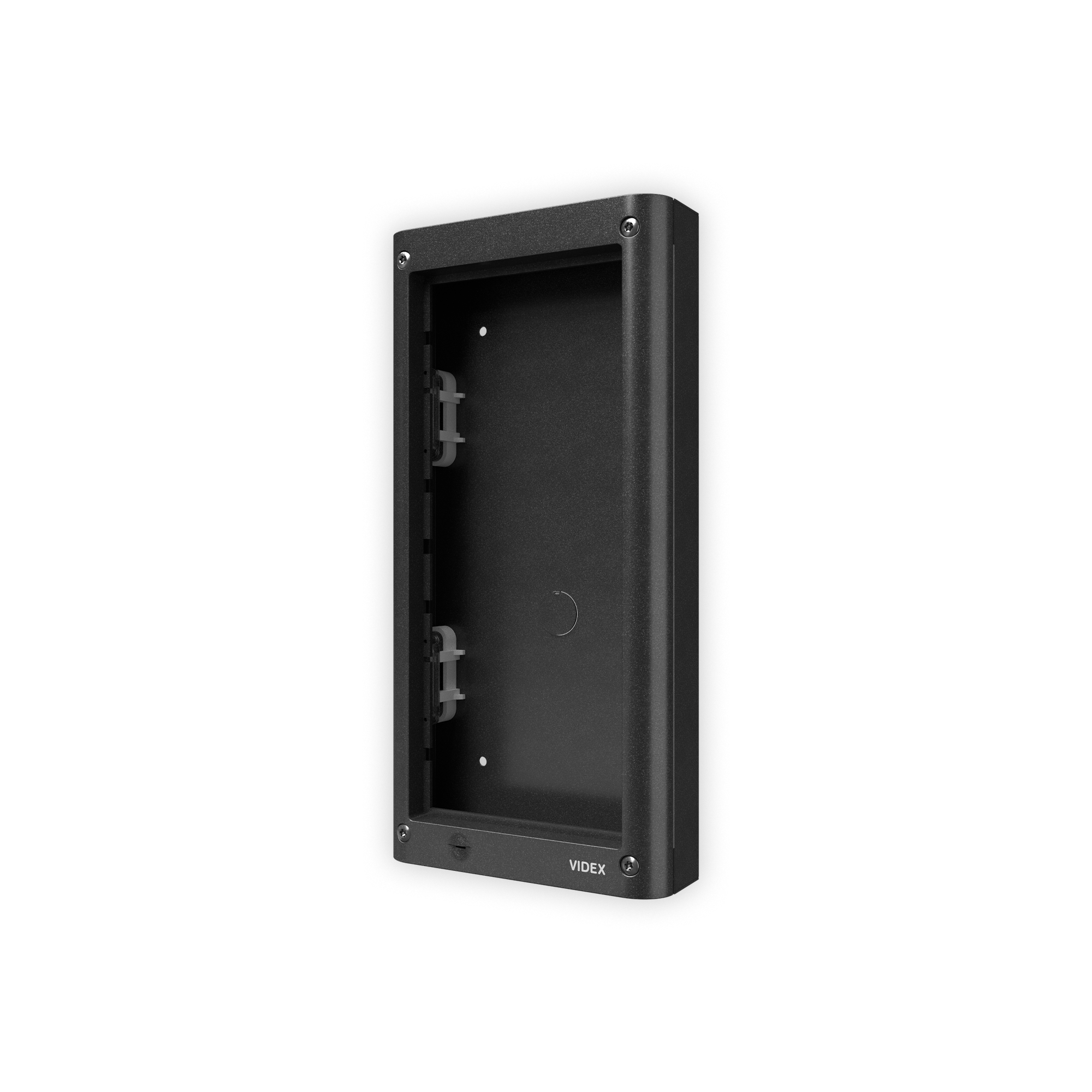 Composto da: scatola da superficie e telaio portamoduli. Il telaio comprende 4 viti di sicurezza tipo Torx, una guarnizione anti-infiltrazioni e cerniere laterali per consentire l’apertura del telaio per l’installazione o ispezione. Dimensioni 135x280x44mm, colore grigio canna di fucile.