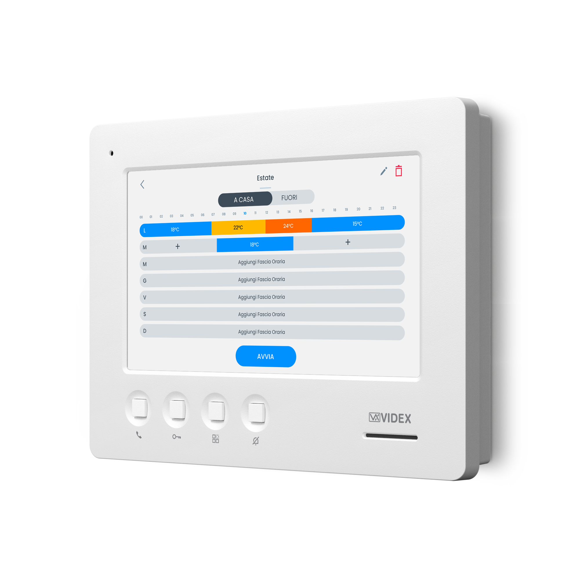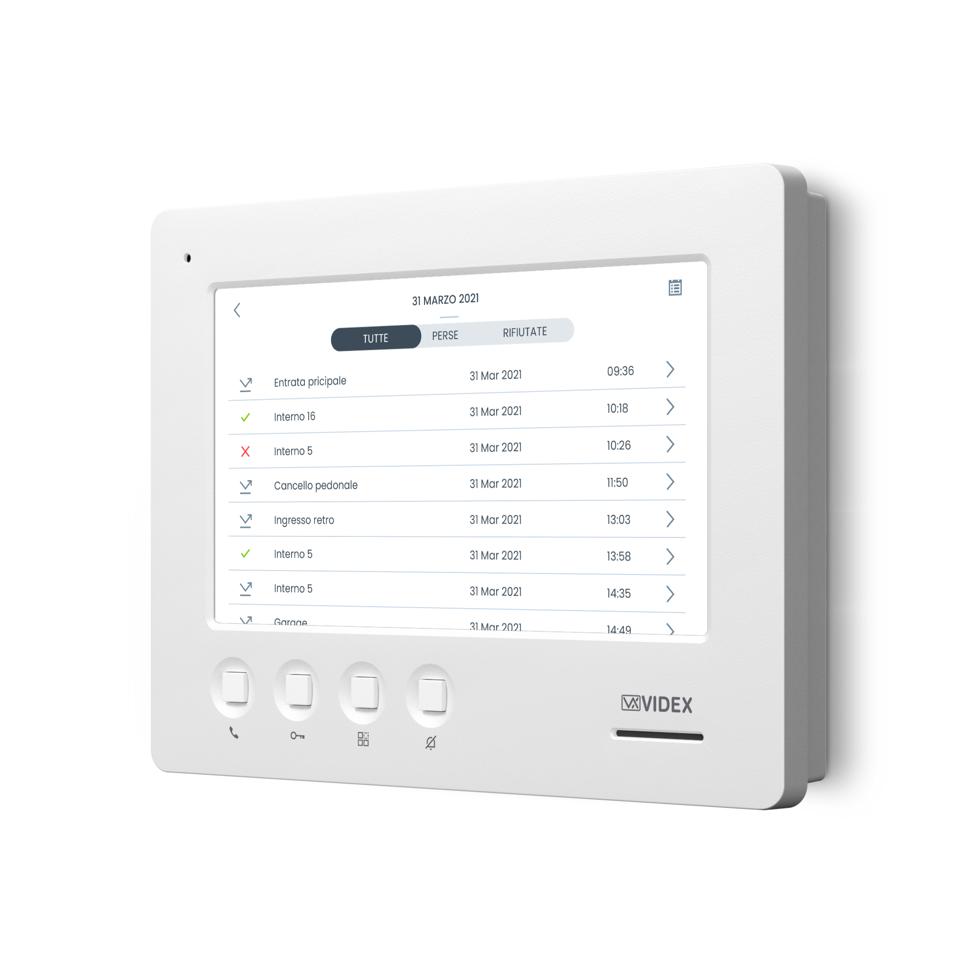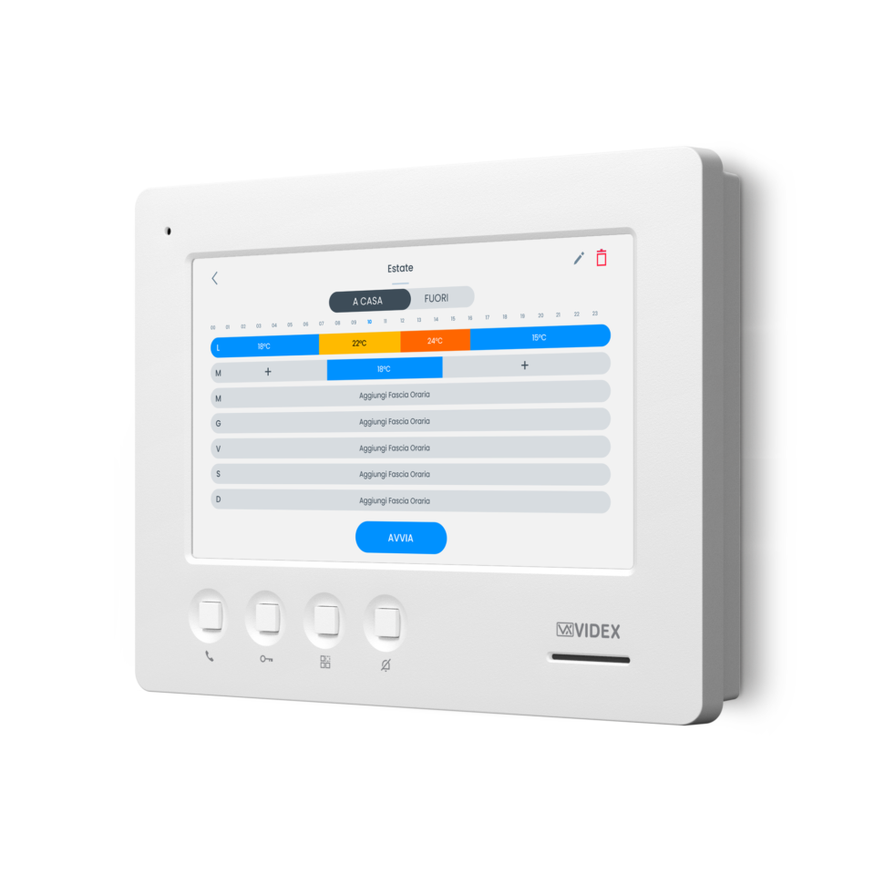 Cconversazione/autoaccensione, apri-porta, chiamata intercomunicante multipla, commutazione telecamera/ servizio privacy |