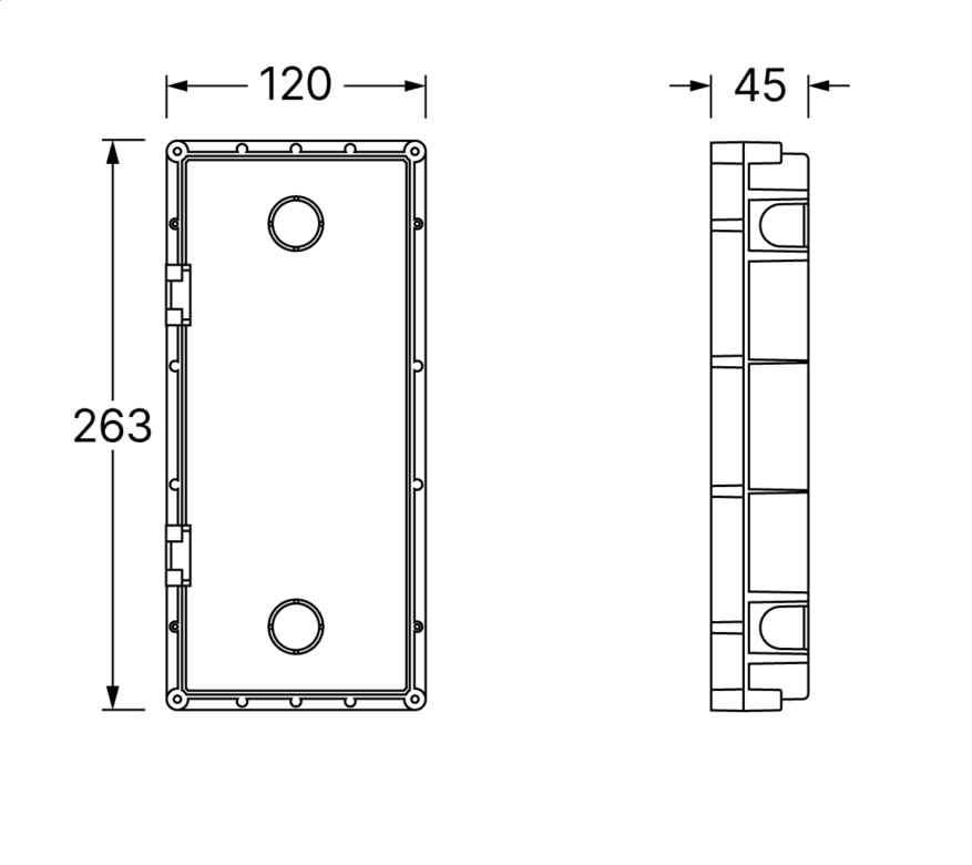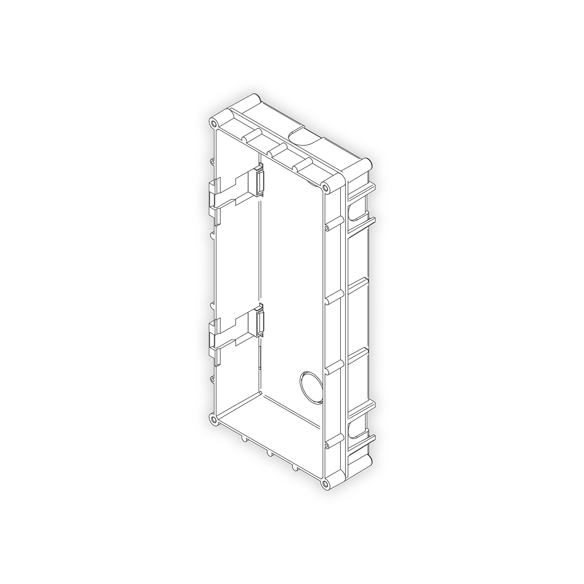 Scatola da incasso a 2 moduli, dimensioni: 120x263x45mm.