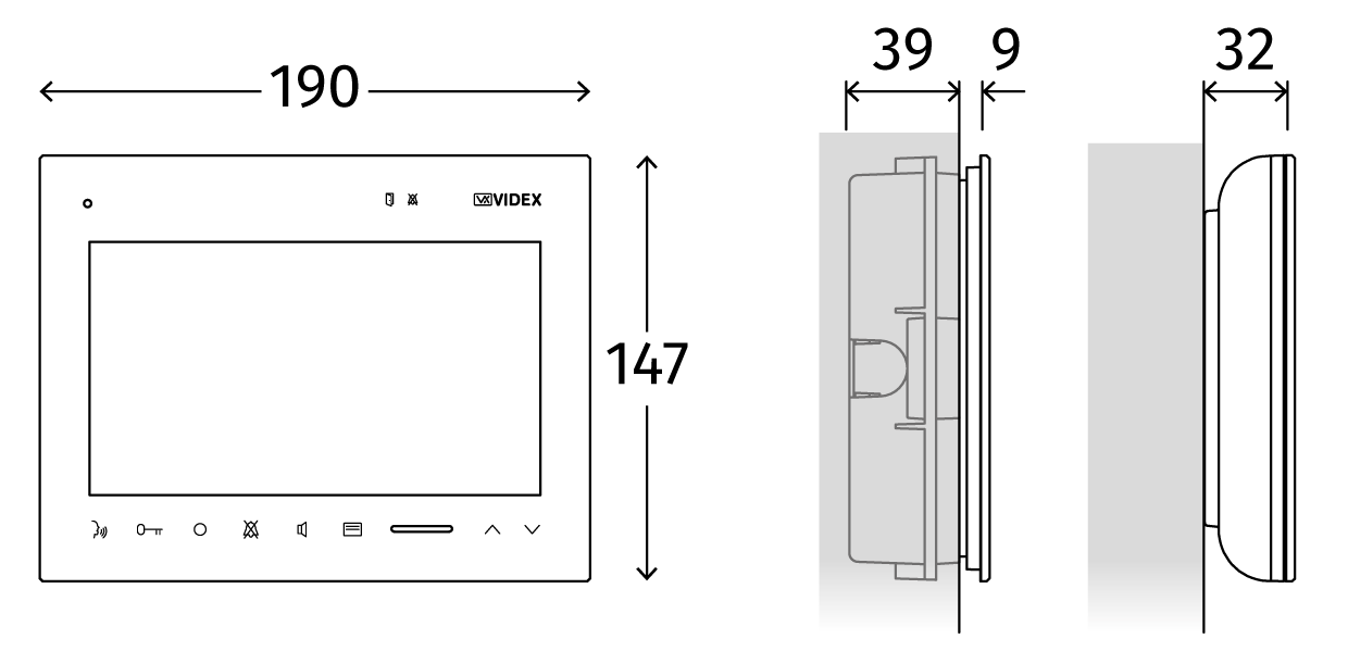 Videocitofono serie KRISTALLO per sistema VX2300 viva voce full-duplex, monitor TFT LCD da 7”, 8 pulsanti soft touch per funzioni : conversazione, rifiuto chiamata, autoaccensione, apri-porta, chiamata intercomunicante, commutazione telecamera, servizio privacy, attivazione relè remoto cod. 2305. Ingresso chiamata di piano. Regolazione contrasto, luminosità, volume di chiamata e privacy. Funzione intercomunicante di serie per un massimo di 4 dispositivi nella stessa montante o derivazione. Configurazione del dispositivo attraverso dip-switch. Materiale in policarbonato bianco effetto lucido. Alimentazione da BUS oppure 12Vdc opzionale con cod. 323/12. Dimensioni montaggio da superficie: 190x147x32mm. Installazione a parete attraverso cod. KRV7985/W, da tavolo cod. KRV7931, oppure da incasso attraverso cod. KRV7981 o KRV7983. Dimensioni montaggio da incasso: 190x147x9mm.