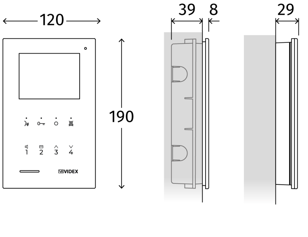 | Pulsanti / Servizi | Conversazione/Autoaccensione/Push to talk, Apri porta/Chiamata a portiere, Servizio, Privacy/Rifiuto chiamata. Fino a 4 pulsanti programmabili per intercomunicazione (con altro appartamento o con altra stanza dello stesso appartamento). Fino a 4 pulsanti di servizio per l’attivazione di relè remoti |