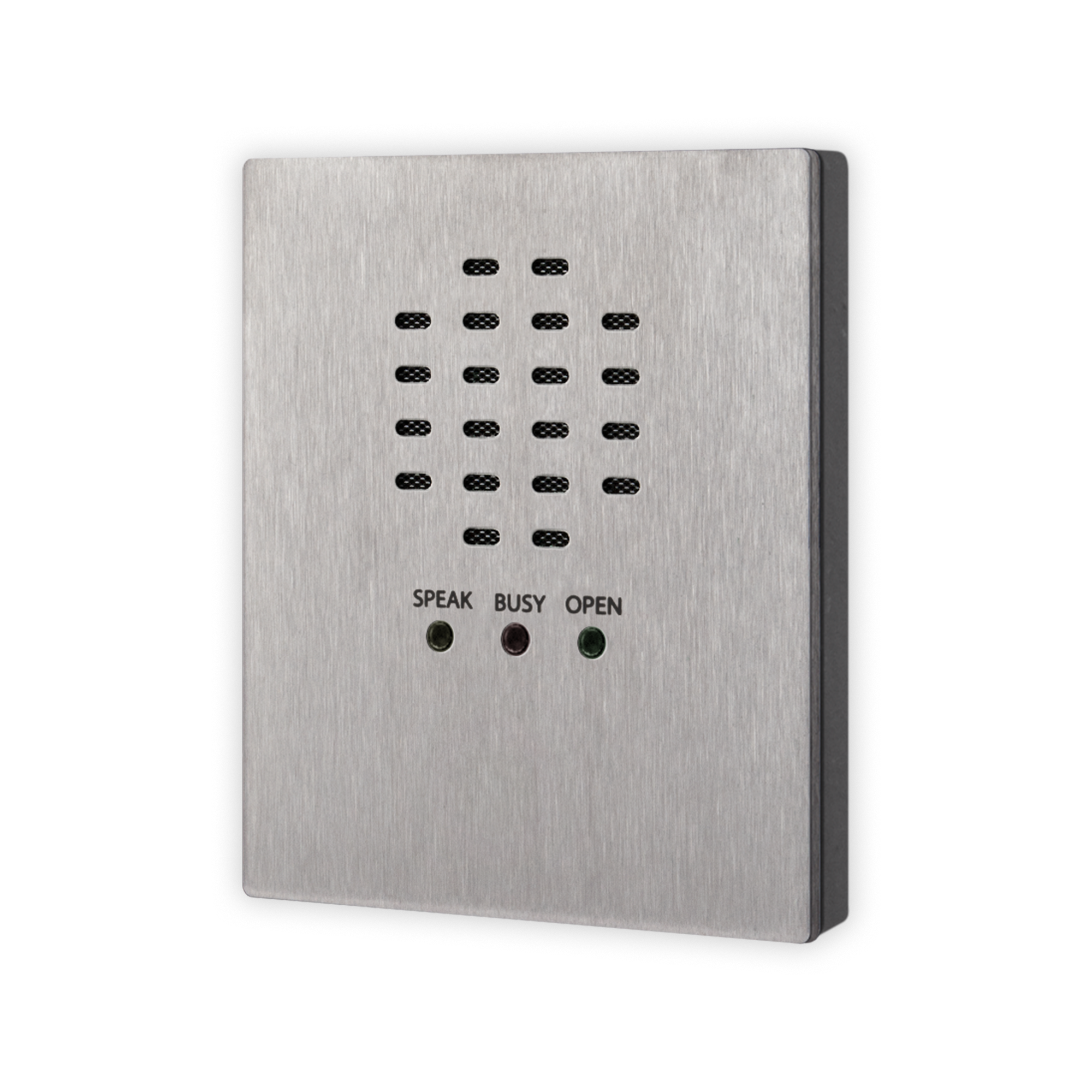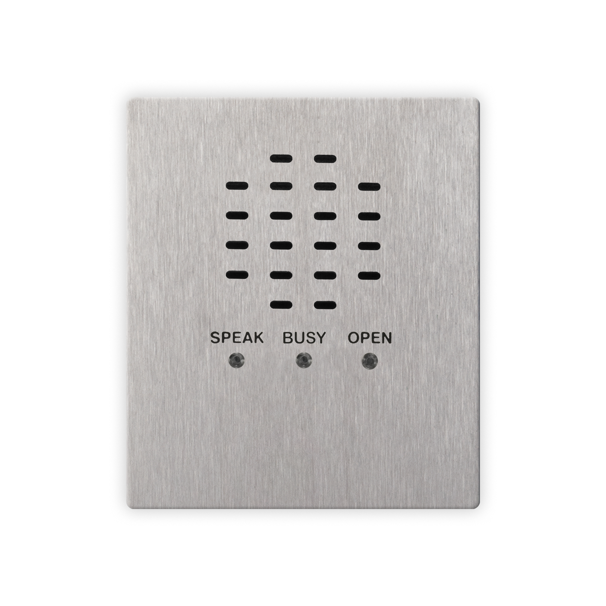 Modulo audio a 0 pulsanti serie 4000 IK09 per sistema GSM, connessione 4G/3G/2G, 1 microfono integrato, 1 altoparlante integrato 8Ohm/2W, amplificatore in classe D da 1W. Funzione audio full-duplex (AEC) con riduzione digitale del rumore/disturbo. Possibilità di collegare in locale un pulsante apriporta. Connessione tramite morsettiera di moduli pulsanti opzionali per un totale di 24 pulsanti. 3 LED di segnalazione visiva di stato impianto: occupato, comunicazione aperta e apertura porta. Tempo di apertura porta e conversazione configurabili. 1 relè di serie a contatti puliti C-NO-NC (max 24Vac/dc - 2A), 1 uscita open collector, 2 ingressi ausiliari. Livelli del microfono e dell’altoparlante regolabili. Microfono da alloggiare nel vano specifico dei telai porta moduli che consente una migliore resa fonica anche in ambienti rumorosi azzerando inoltre eventuali problemi di effetto larsen. 4 numeri telefonici (1 primario, 3 deviazioni) da abbinare ad ogni pulsante di chiamata/utenza. Fino a 1.000 utenti con funzione dial to open (chiama per aprire). 4.000 log eventi in locale ed illimitati con accesso da remoto. Placca in acciaio inox spazzolato AISI 316 (marine grade) che conferisce durabilità in installazioni soggette ad agenti atmosferici e in prossimità di ambienti marini. Placca antivandalica IK09 e grado di protezione IP65. Temperatura di esercizio -20°/+60°C. Alimentazione 12Vcc / 12Vac ± 10%/400mA. Configurazione semplificata del dispositivo attraverso software GSMPRO in locale o remoto, oppure attraverso SMS. Necessita di installazione antenna cod.434. Dimensioni 103x120x43mm. Ingombro 1 modulo.
