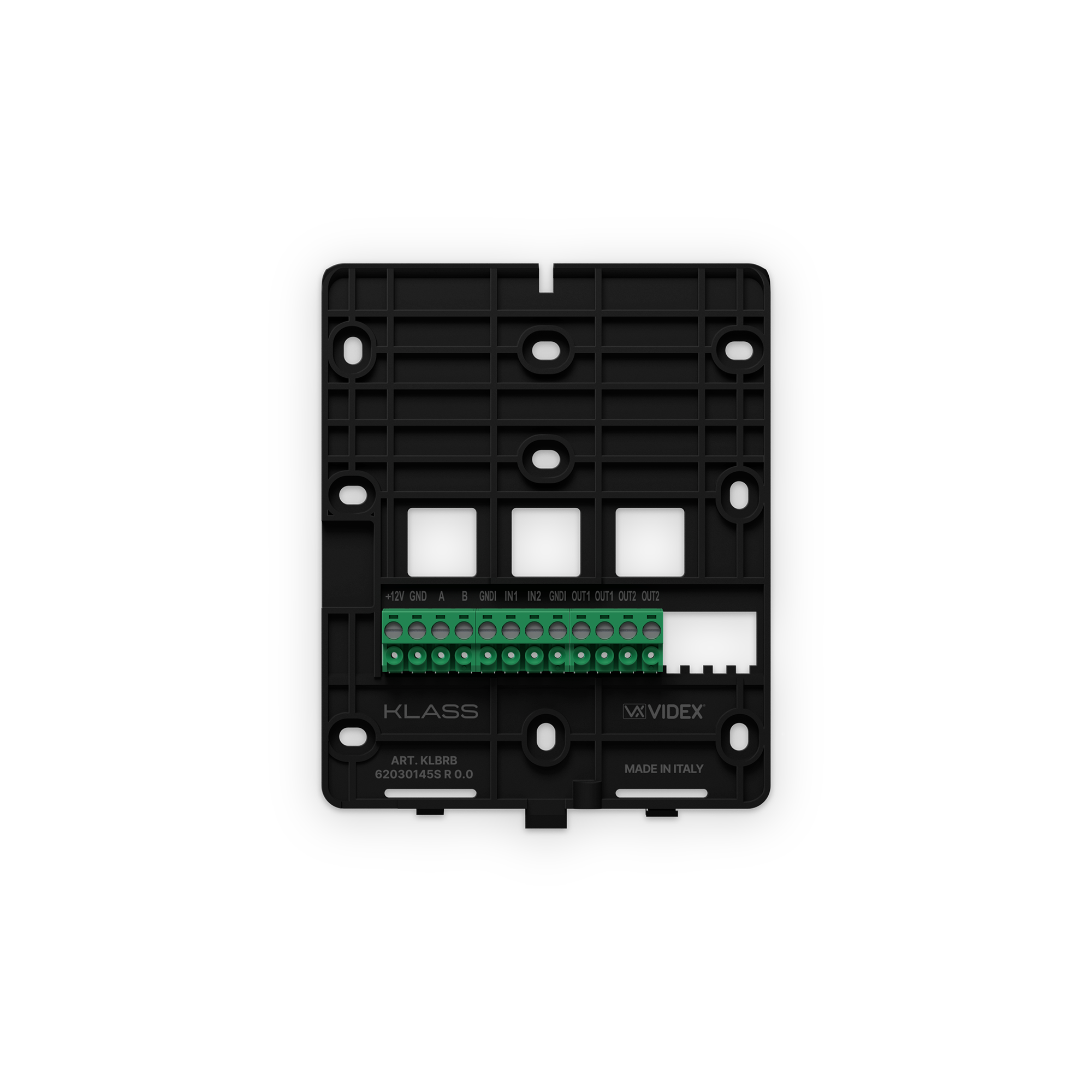 Staffa di ancoraggio e connessione Serie Klass. Materiale in ABS colore nero. Dimensioni 97x122x5mm.