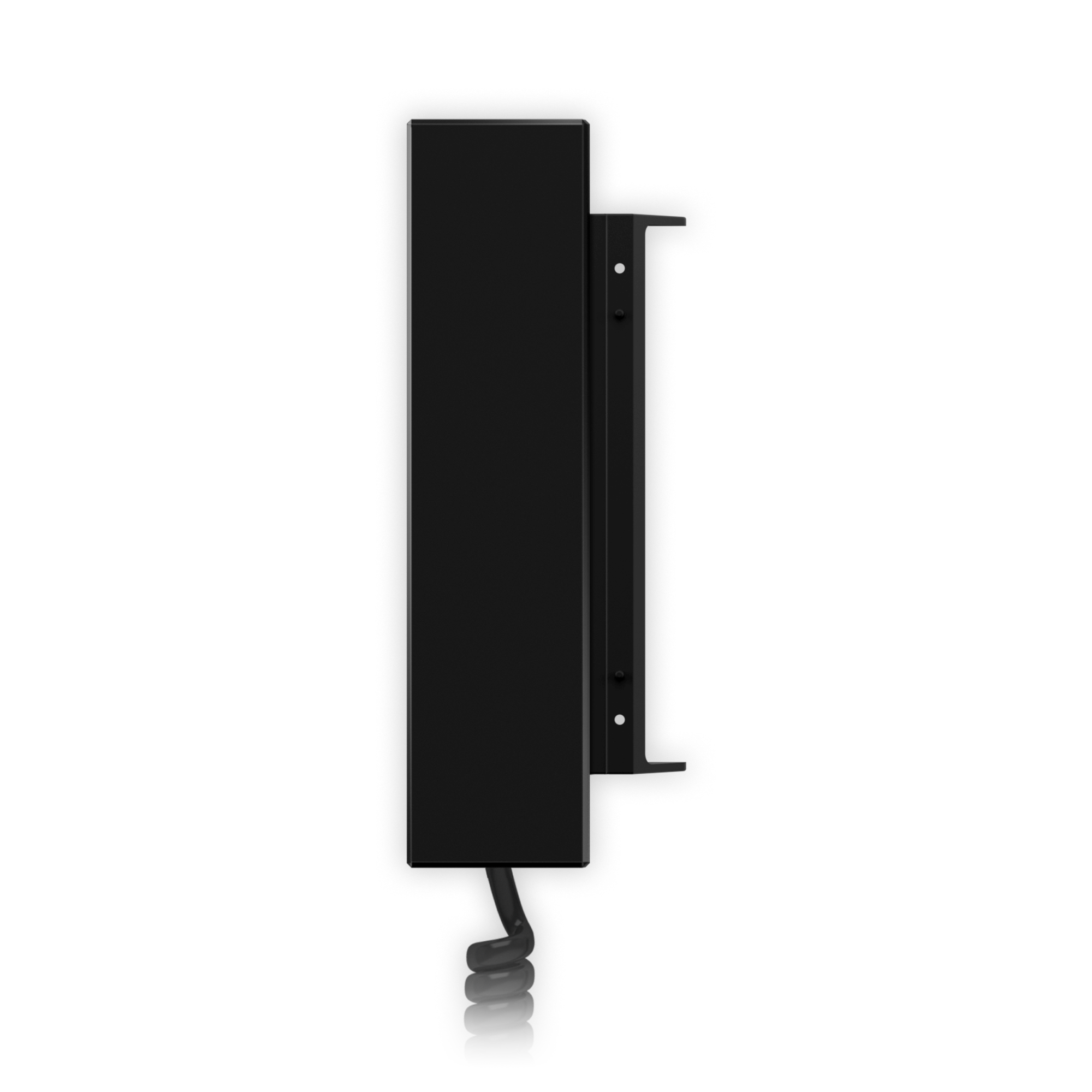 Cornetta Serie Klass con aggancio magnetico e cordone. Materiale in ABS colore nero. Dimensioni 42x165x30mm.