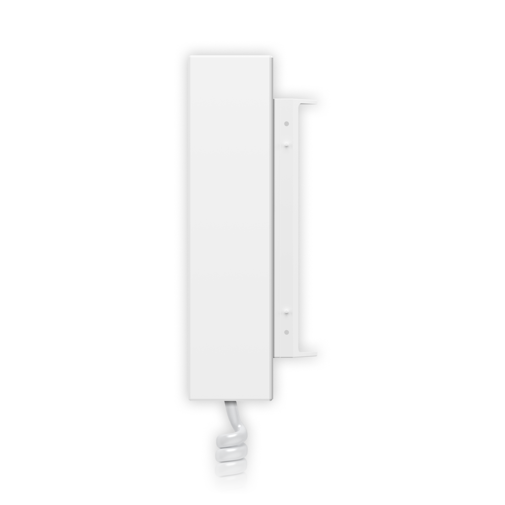 Cornetta Serie Klass con aggancio magnetico e cordone. Materiale in ABS colore bianco. Dimensioni 42x165x30mm.