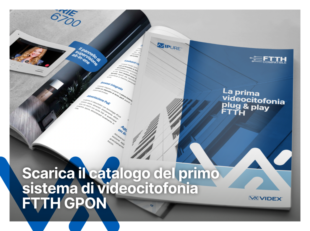 Scarica ora il catalogo per scoprire tutti i vantaggi della videocitofonia IPure FTTH GPON plug & play.